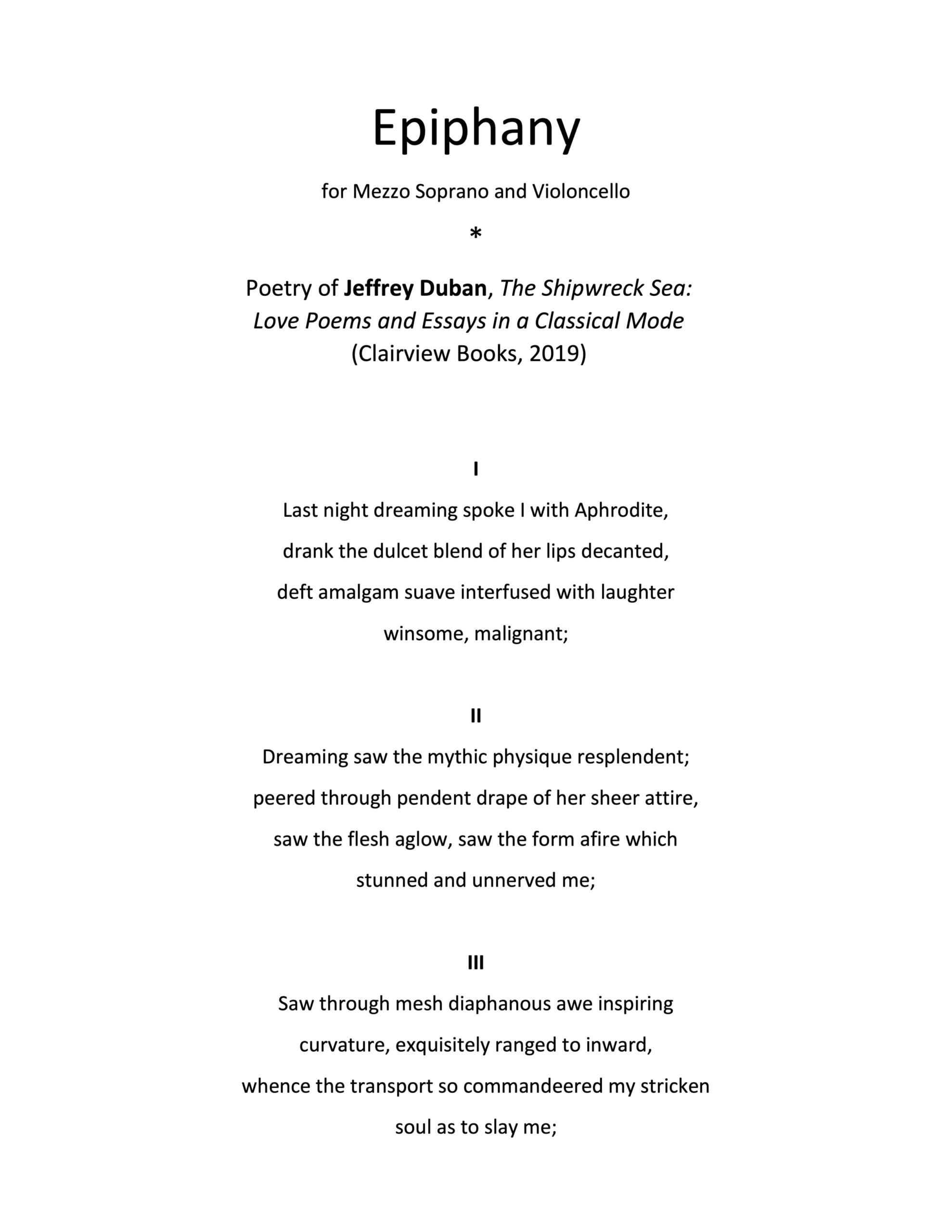 Music, Constantine Caravassilis (2020)Poem, Jeffrey M. Duban* Mezzo-Soprano, Max PotterViolincello, Tara Hanish